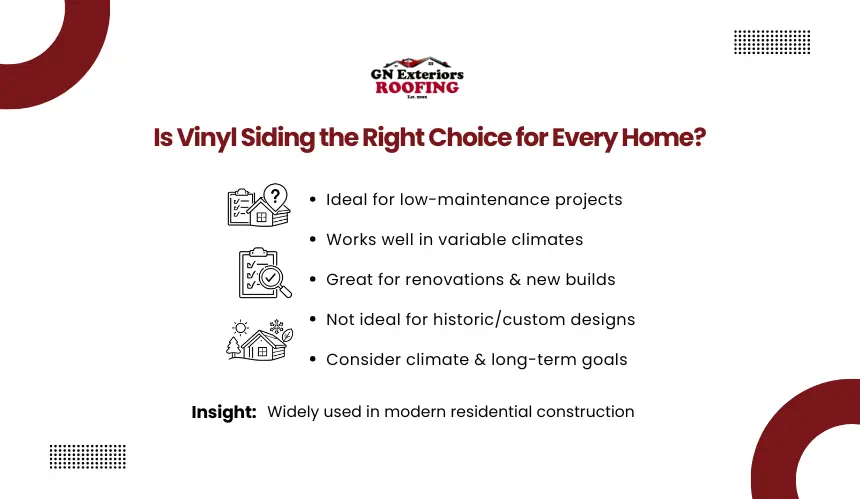 Even though vinyl siding is widely adopted, it is not automatically the best fit for every property. Homeowners often need to evaluate specific project conditions, architectural requirements, and long-term goals before making a final decision.